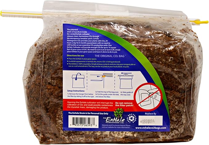 - სუბსტრატი – ExHale-ის სუბსტრატი არის საკუთრების ფორმულა, რომელიც შექმნილია CO2-ის მწარმოებელი მიცელიუმის საკვების წყაროდ დიდი ხნის მანძილზე.